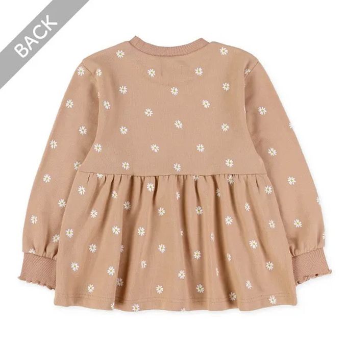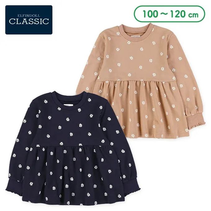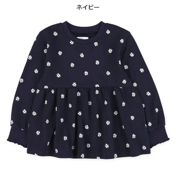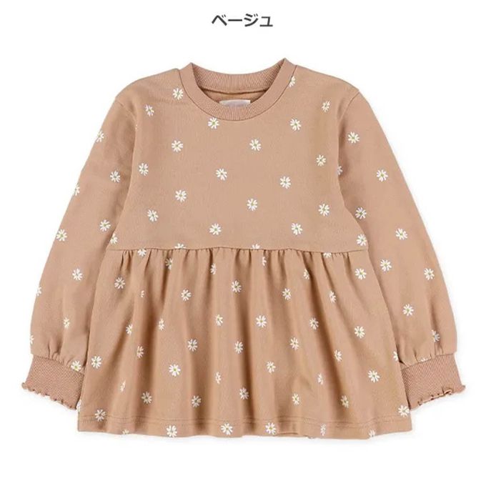 日本西松屋 - 層次波浪花朵印花長袖上衣-橘杏