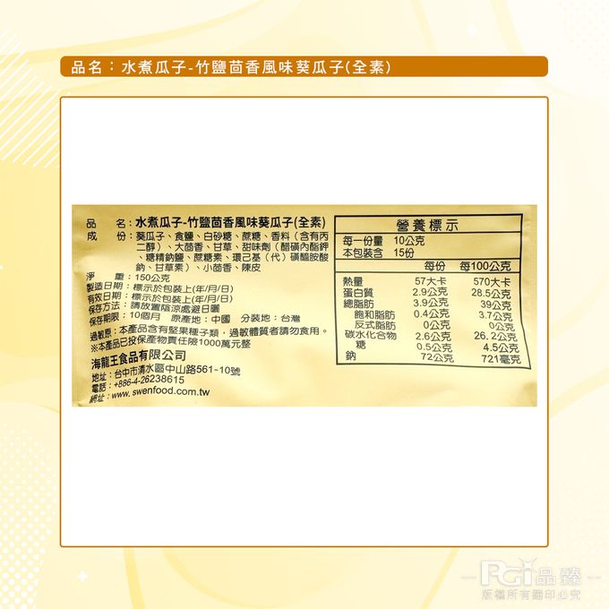 過敏原:本產品含有堅果種子類,過敏體質者請勿食用。