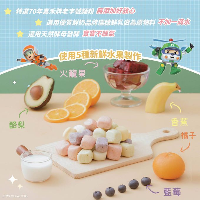 成份 :高級麵粉(小麥),瑞穗鮮乳,酪梨,茂谷柑或甜橙,香蕉,火龍果,藍莓,天然酵母,椰子油。