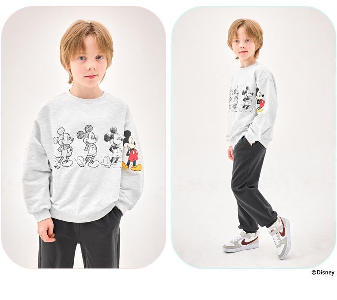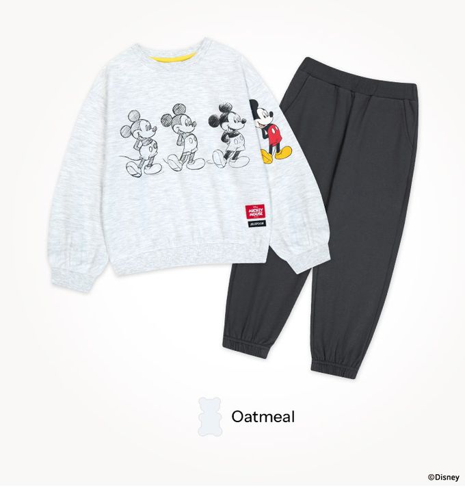 韓國 Jelispoon - (聯名款)素描卡通人物米奇長袖套裝-淺灰X墨灰