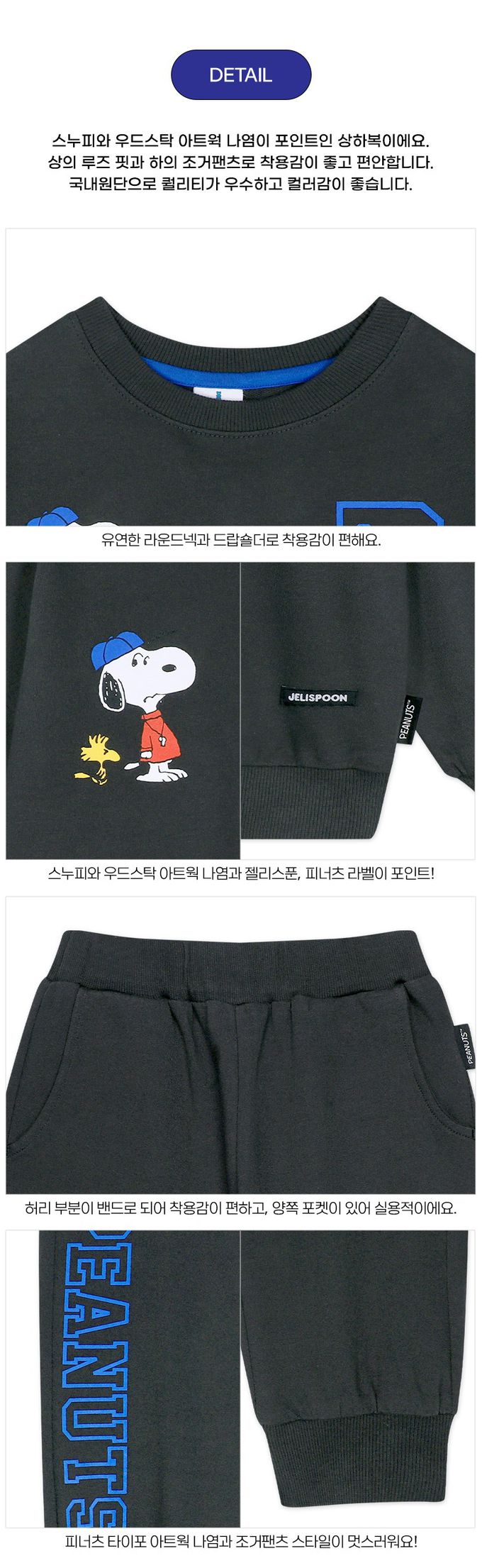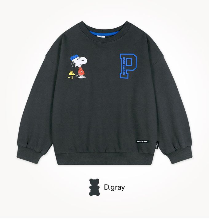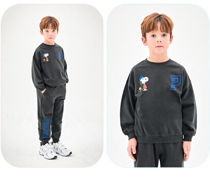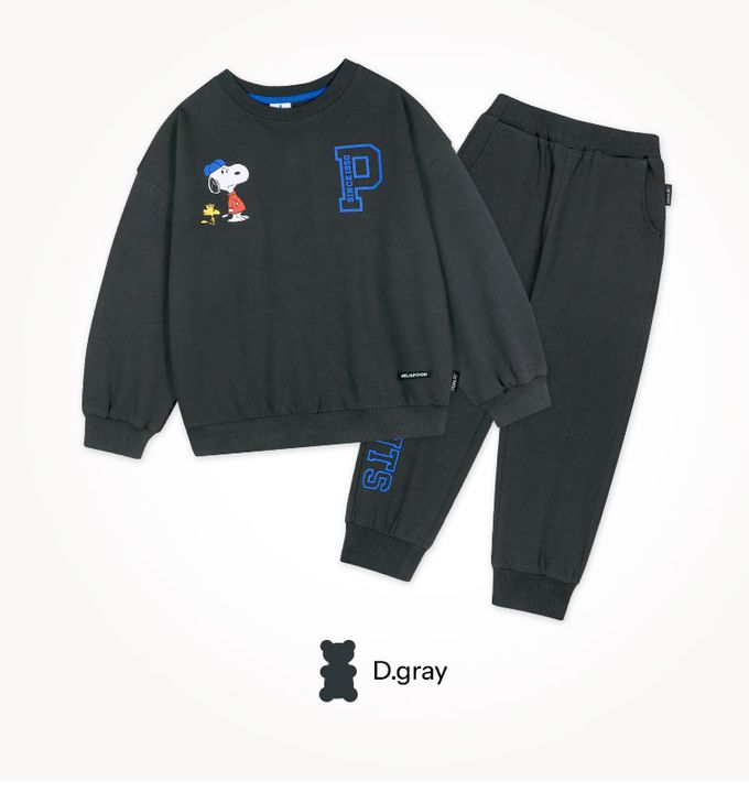 韓國 Jelispoon - (聯名款)字母P休閒長袖套裝-卡通人物史努比-深灰