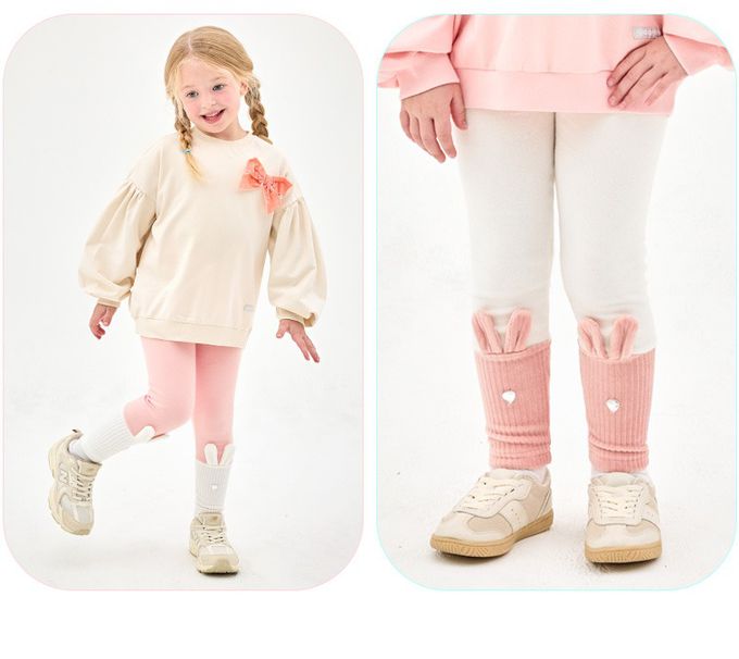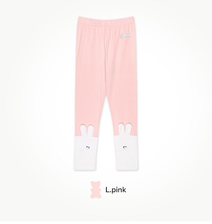 韓國 Jelispoon - 鬆緊腰寶石兔兔點綴彈力內搭褲-粉