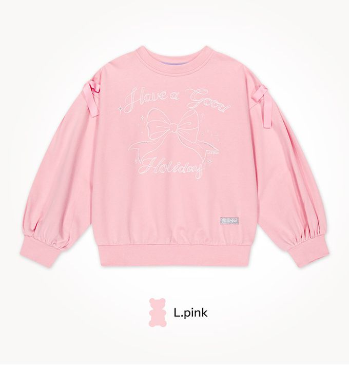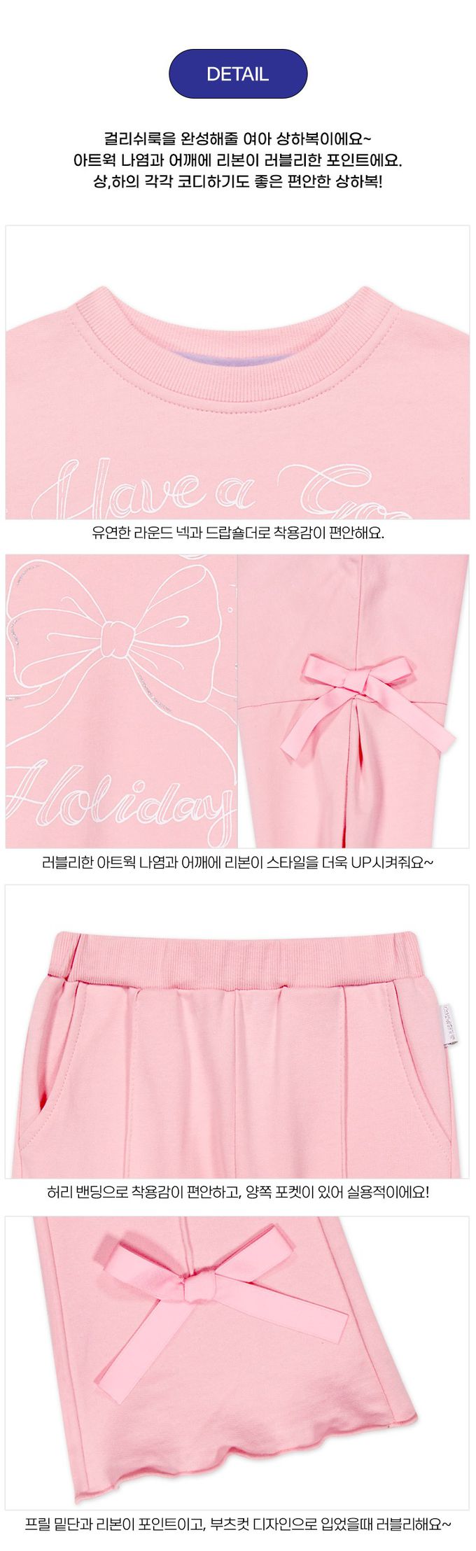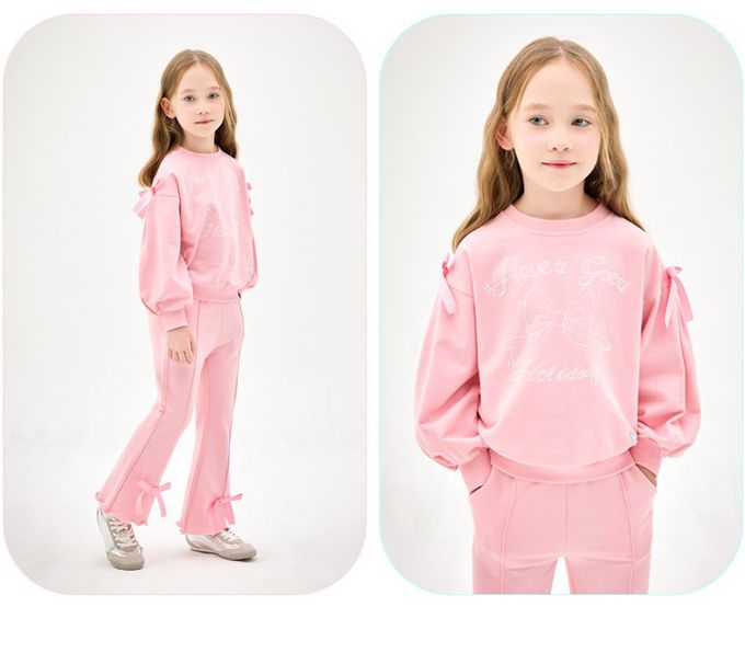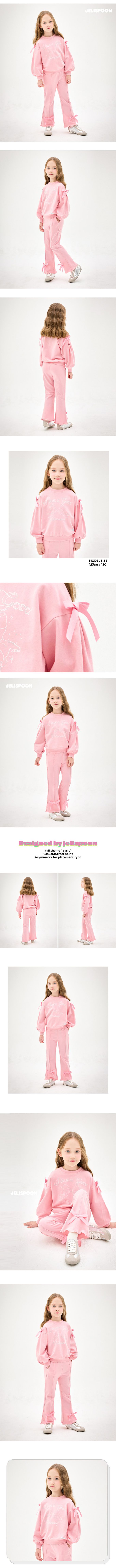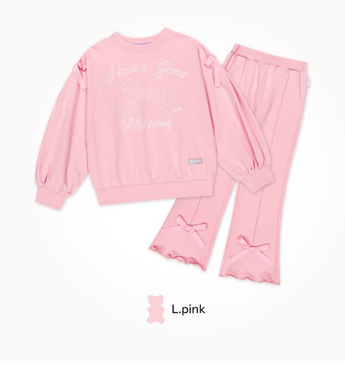 韓國 Jelispoon - 甜美蝴蝶結裝飾純棉長袖套裝-粉