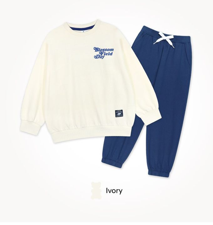 韓國 Jelispoon - 熊熊打棒球純棉長袖套裝-米白X深藍