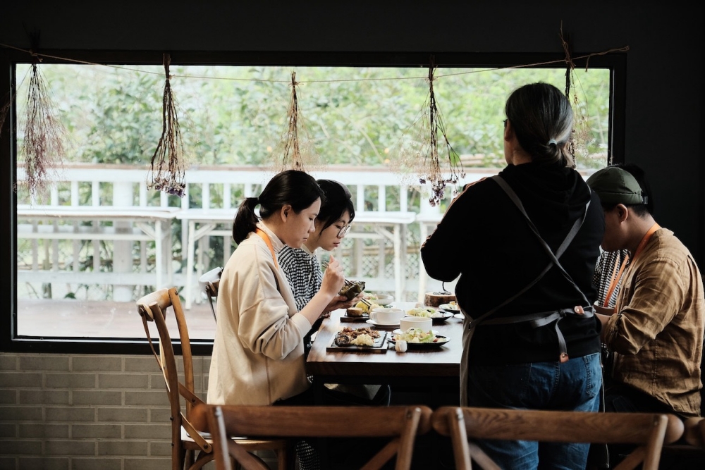 晚餐時間更是讓人期待,整個行程都是「無腦式安排」,根本不用煩惱吃什麼。最喜歡這種行程,不用想要吃什麼,反正有人幫你準備好。農場的餐點會把自家香草入菜,從下午茶到部落晚餐、隔天早餐,全部都是一邊吃、一邊認識泰雅文化的概念。