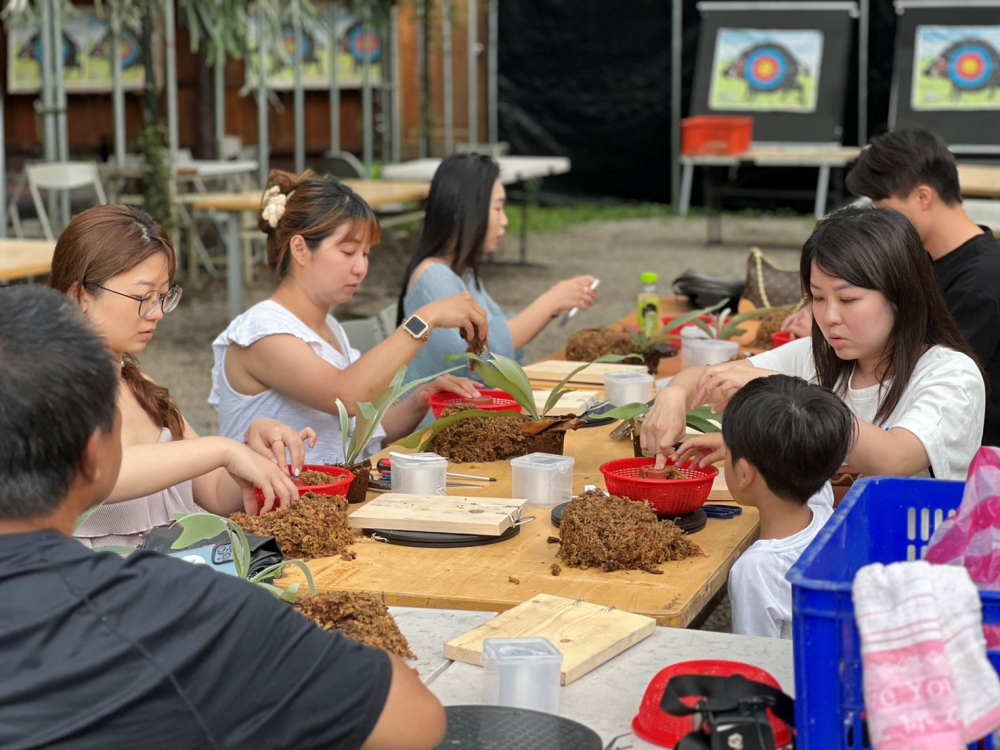 🔸 竹筒飯:從切竹子開始,爸媽揮刀,小孩幫忙裝米和水,再封上錫箔紙。柳橙第一次看到竹筒飯,眼睛閃閃發亮!不過因為一路吃太飽,最後竹筒飯還是打包帶回家。