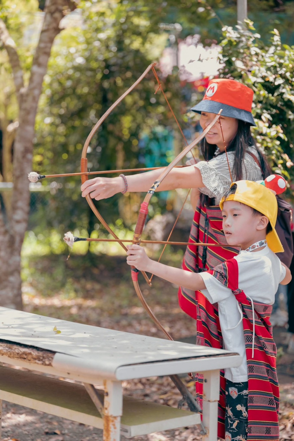 🔸 獵人射箭:農場主人分享射箭是泰雅男性必學的成年技能。這關比較適合大一點的孩子,所以柳橙只負責拍照和幫爸爸加油。
