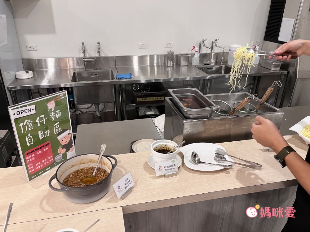 另一區就是G編一定要分開來介紹的!自助擔擔麵區,附有不同的麵類,旁邊也有不同的醬料,可以依據個人的口味自行調配哦!整個新奇又好玩的