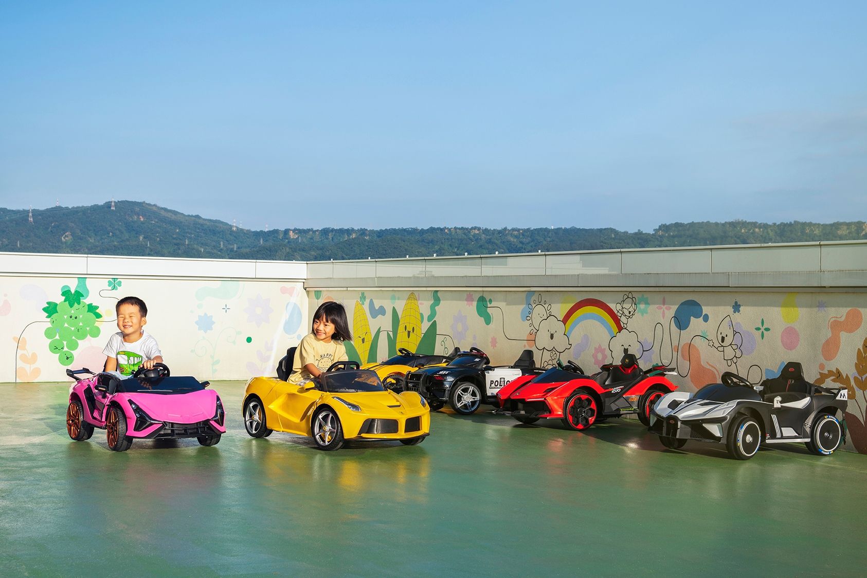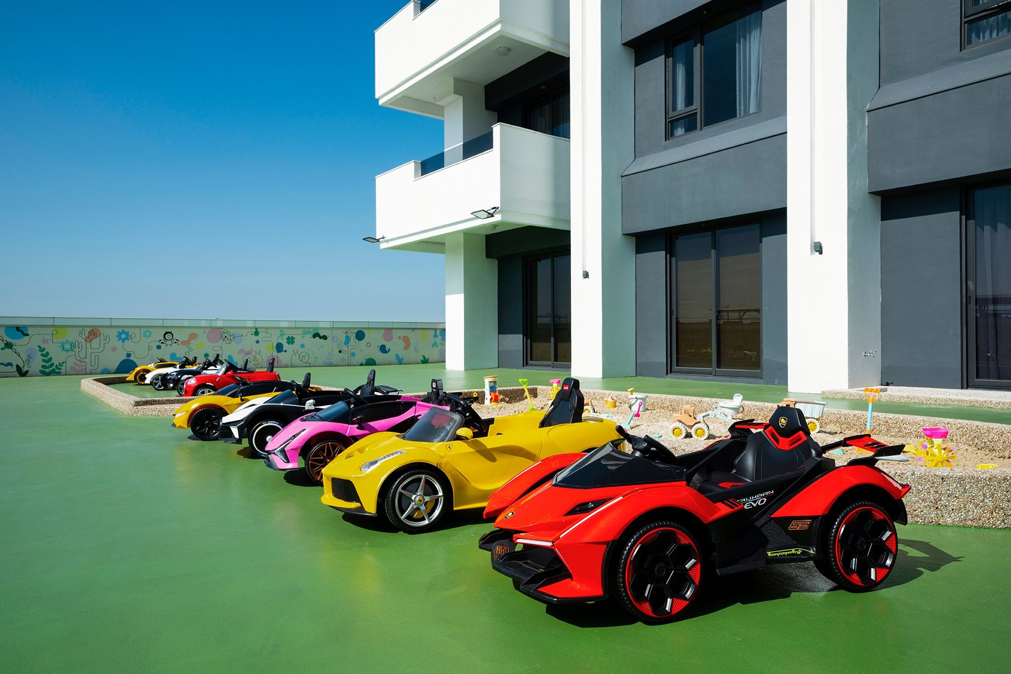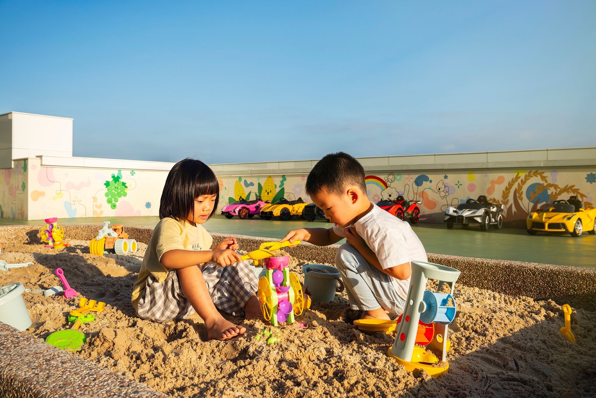 還設置了兒童電動賽車區、沙坑可以讓孩子盡情玩樂~