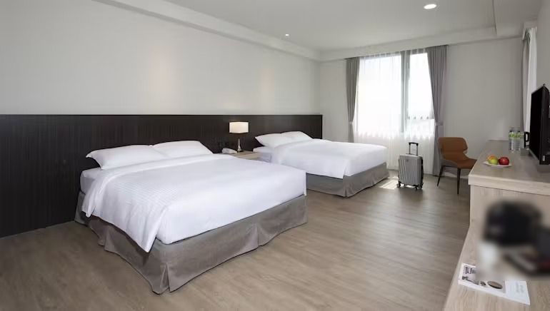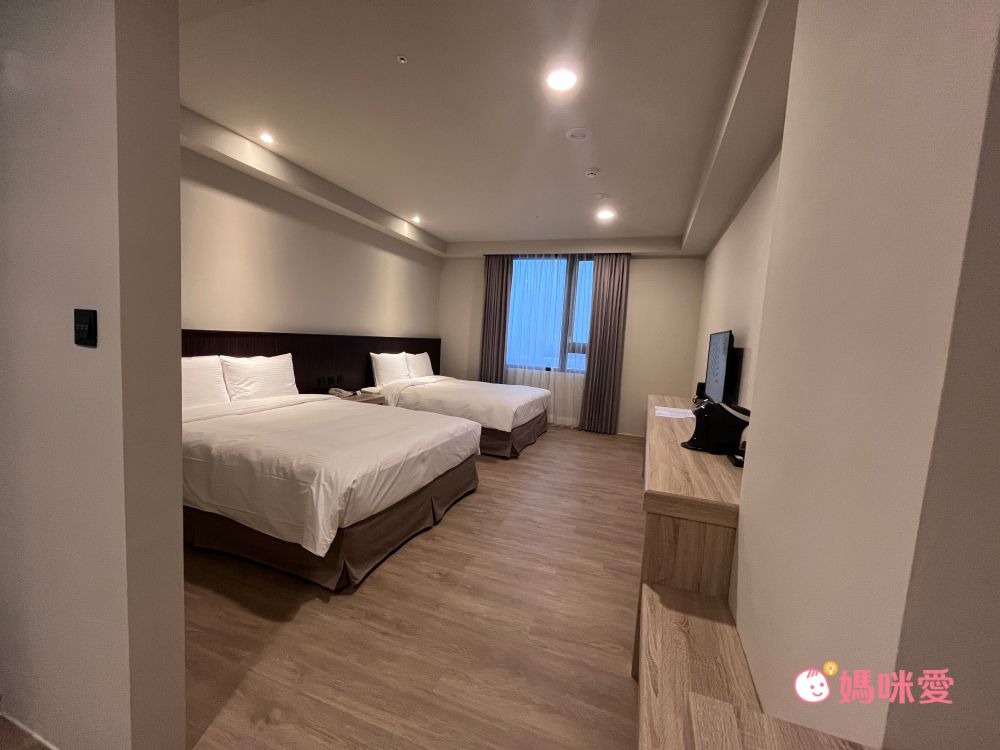 全館幾乎都是兩大床的家庭房房型!一打開門馬上就能驚呼空間超大超寬敞的,而且也有對外窗,窗戶看出去就是彰化高鐵站,就算是整個家庭一起住也不會覺得房間很擠很小哦,整個就是非常舒適。
