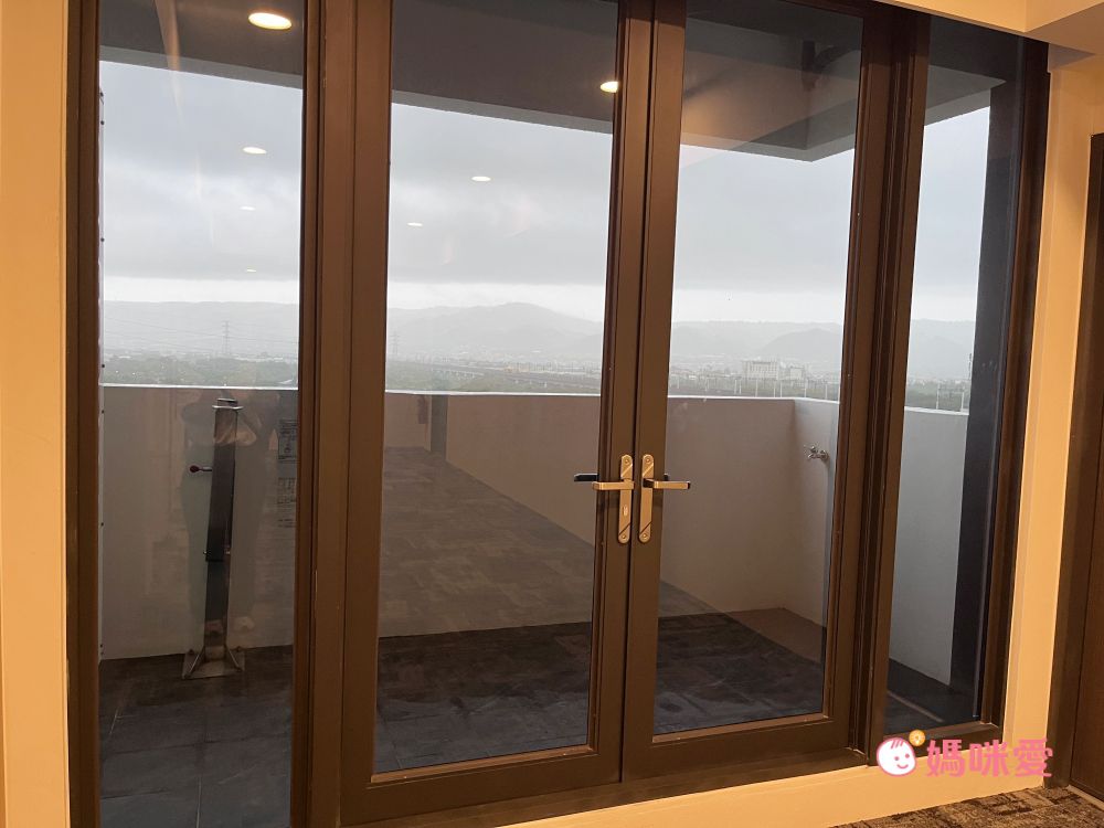 一出電梯一邊是通往房間的走道,一邊是可以開窗出去的小陽台,可惜入住當天下雨,天色不好,如果是好天氣風景應該會很不錯。