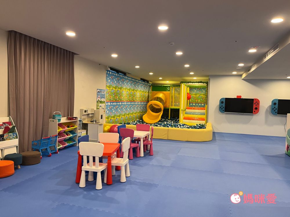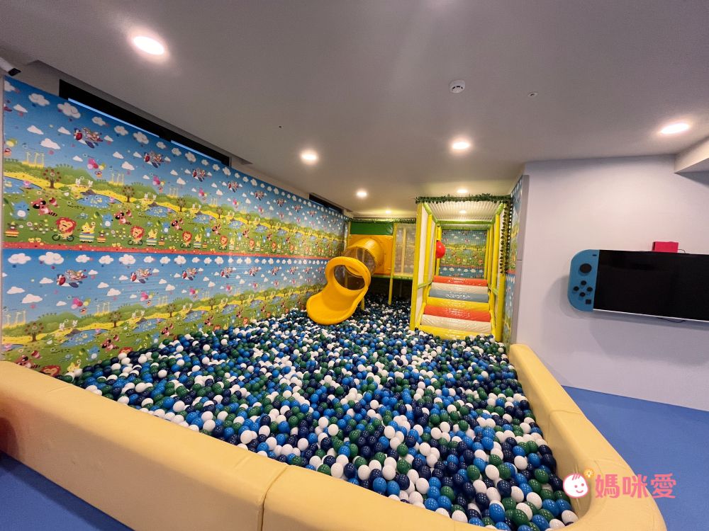 【彰化馥御花園酒店】也有親子友善的設施,不僅有寬敞的歡樂室,裡頭球池、溜滑梯、Switch、繪本童書、家家酒通通有,可以讓孩子大放電!