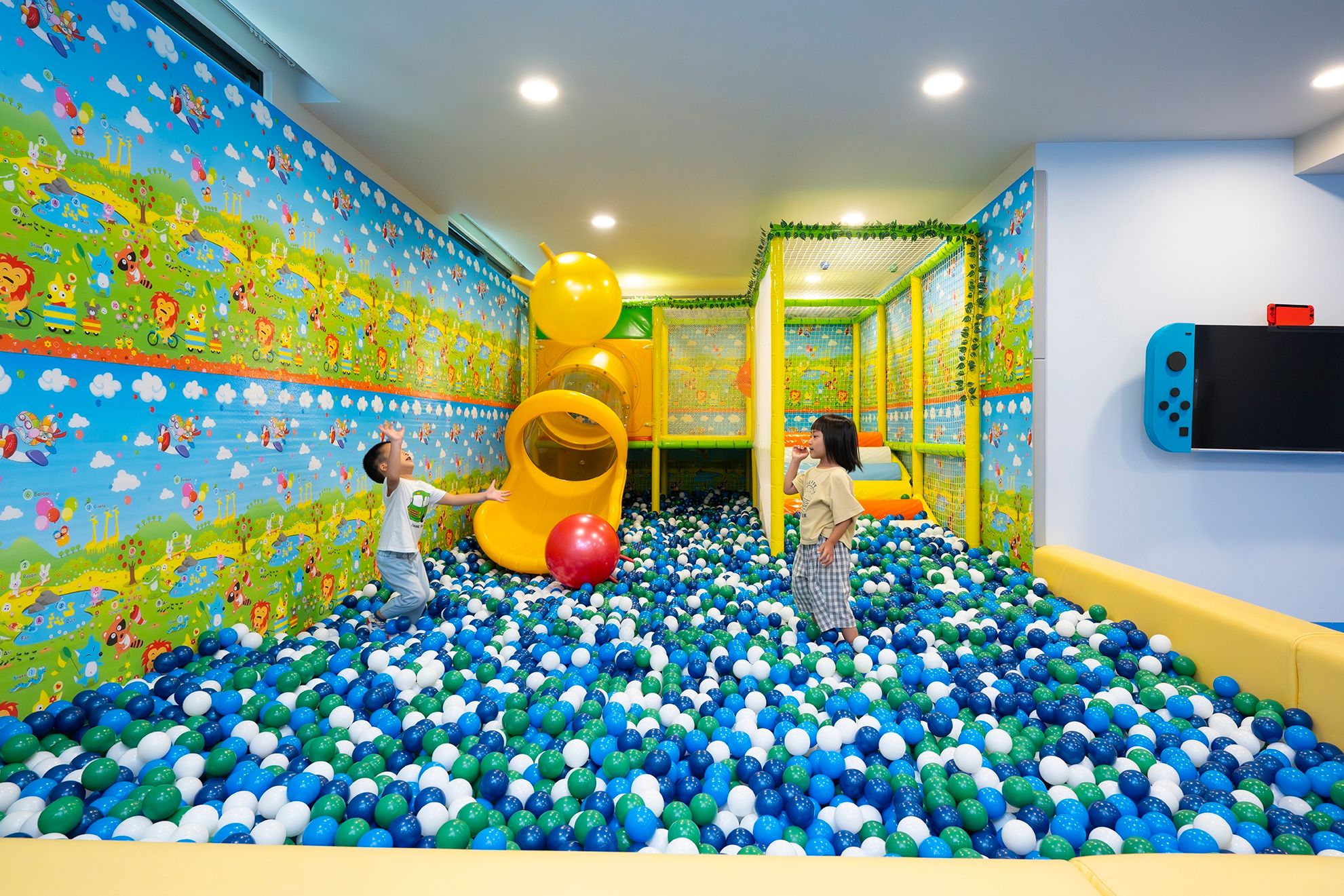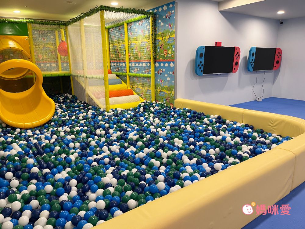 先來介紹非常厲害的「歡樂室」,空間超大,不管是球池、switch還是家家酒玩具統統有,超級齊全的!