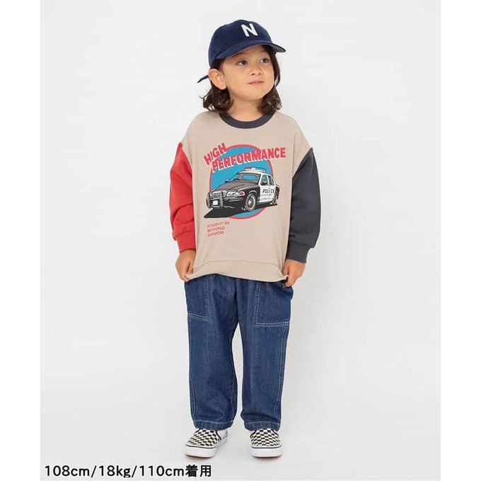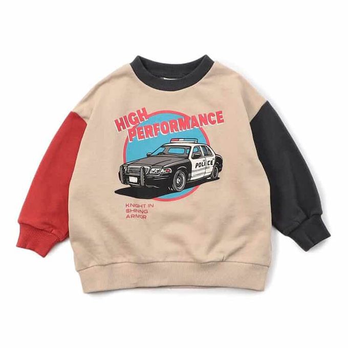 日本 BREEZE - 美式印花縮口長袖上衣-警車-米杏