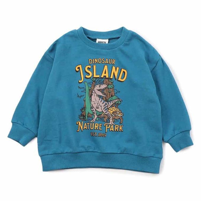 日本 BREEZE - 美式印花縮口長袖上衣-恐龍-水藍