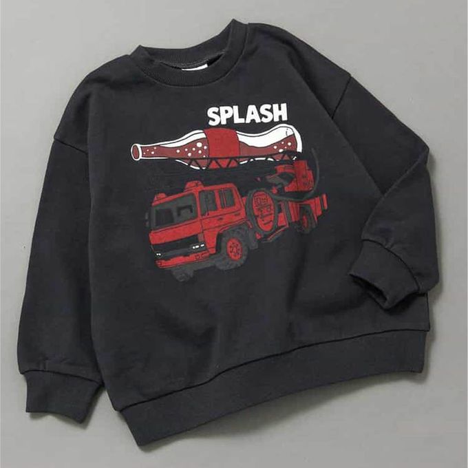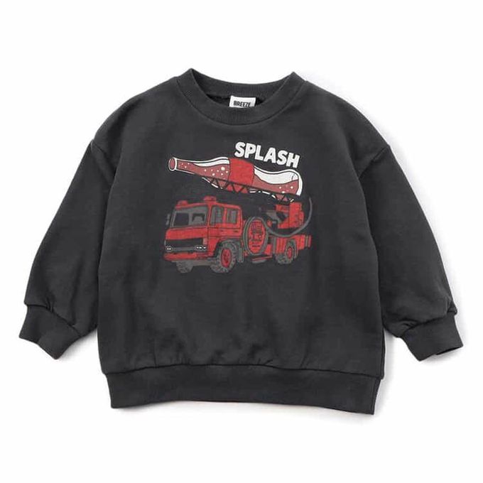 日本 BREEZE - 美式印花縮口長袖上衣-可樂消防車-炭灰