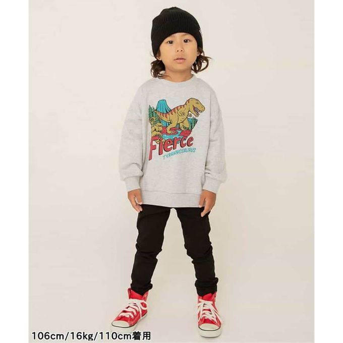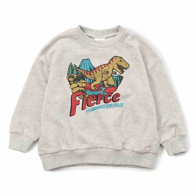 日本 BREEZE - 美式印花縮口長袖上衣-暴龍-淺灰