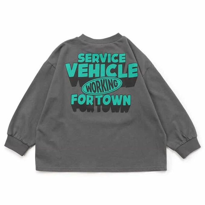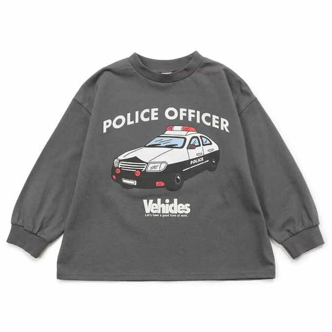 日本 BREEZE - 100%棉 帥氣車車長袖上衣-警車-炭灰