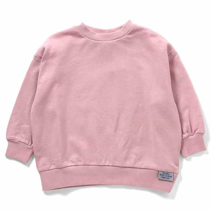 日本 BREEZE - 100%棉 落肩寬鬆縮口長袖上衣-素面-粉紅