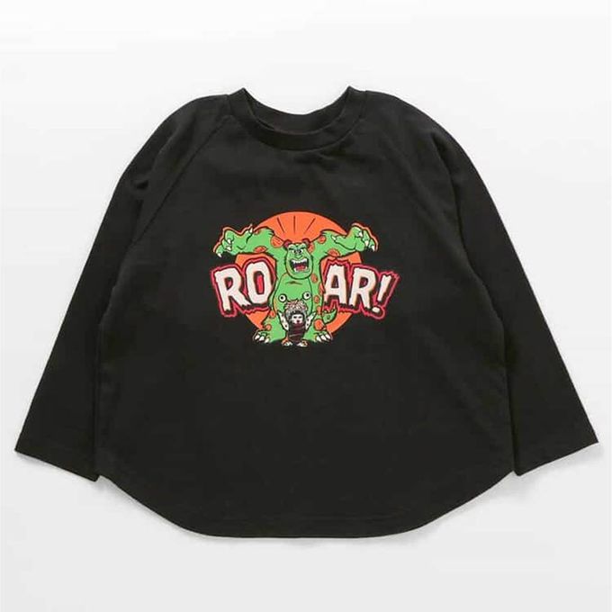 日本 BREEZE - 聯名款 100%棉印花長袖上衣-卡通怪獸電力公司-炭灰