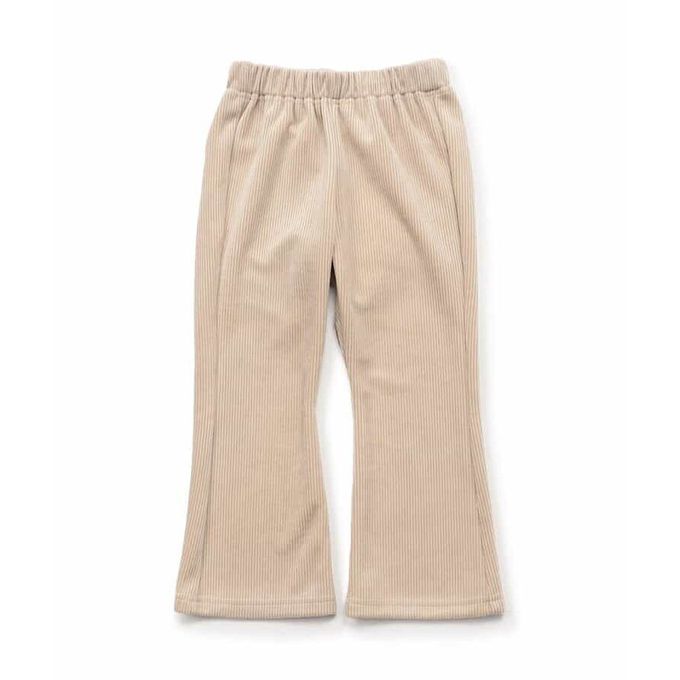 日本 BREEZE - 季節感舒適絨面微喇叭長褲-米白
