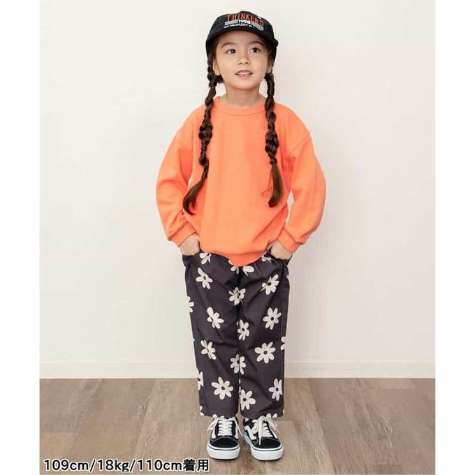 日本 BREEZE - 100%棉 品牌經典百搭廚師褲-花朵-炭灰