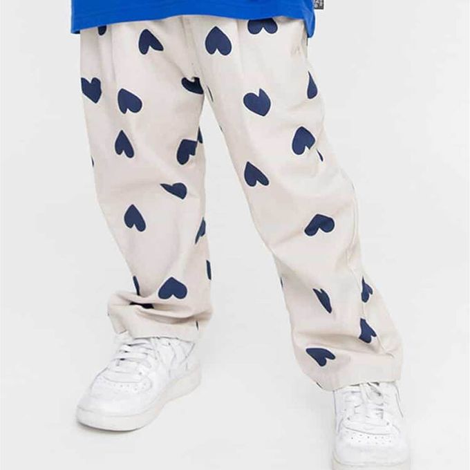 日本 BREEZE - 100%棉 品牌經典百搭廚師褲-愛心-白