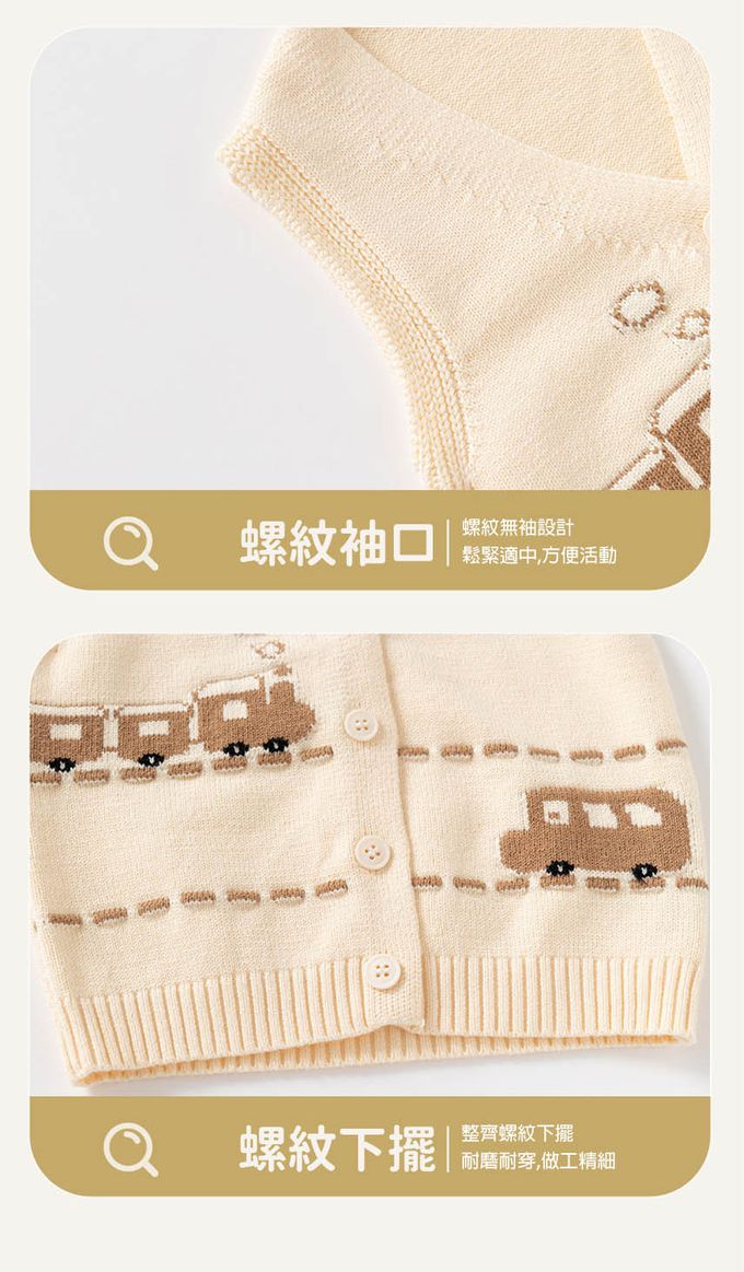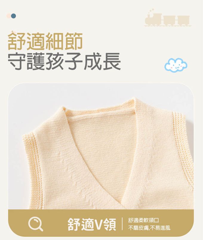 BABUYU - 舒適V領百搭針織背心-Hey熊熊-杏色-藍色內裡