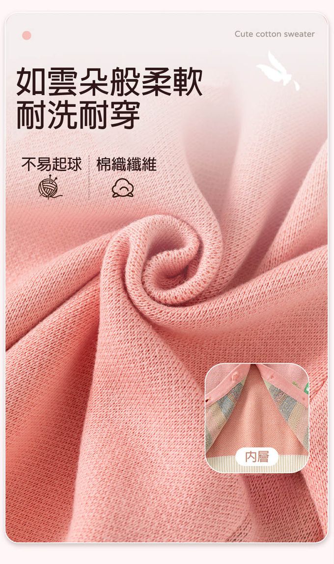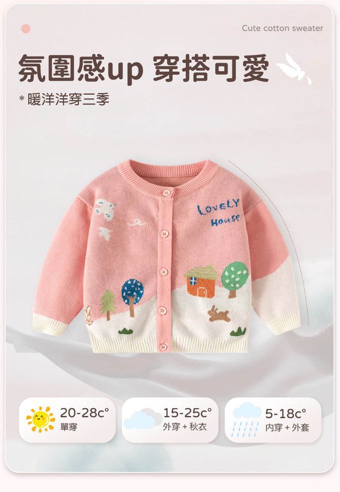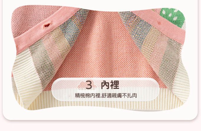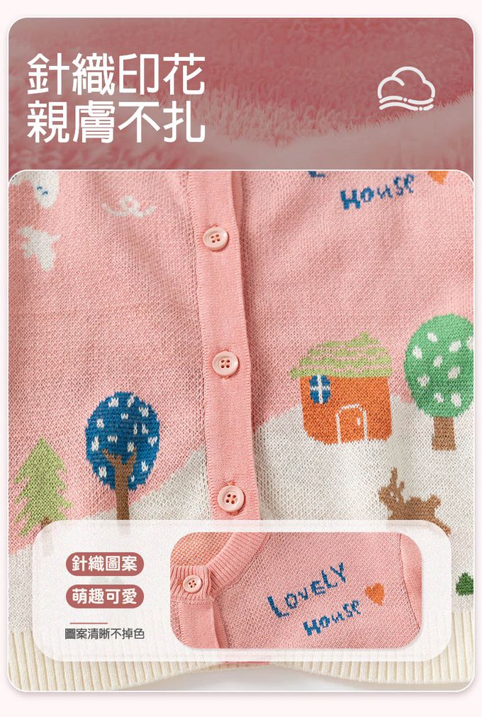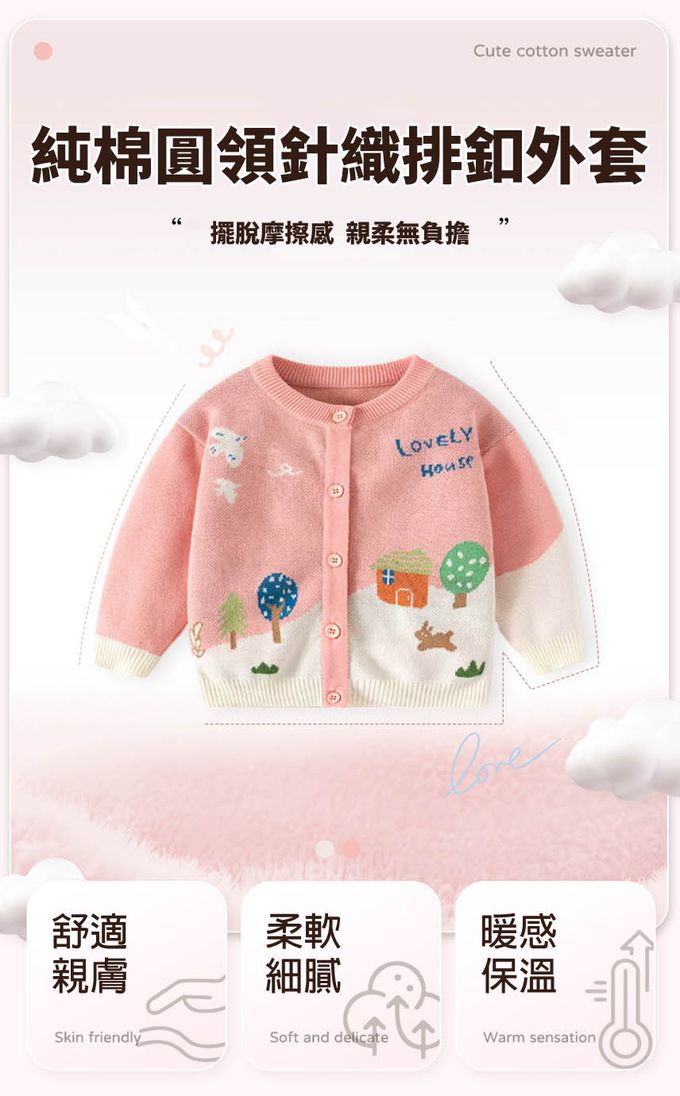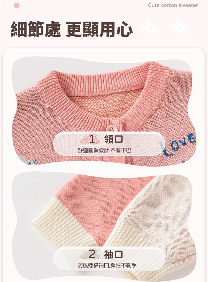 BABUYU - 純棉圓領針織排釦外套-花花世界-粉色