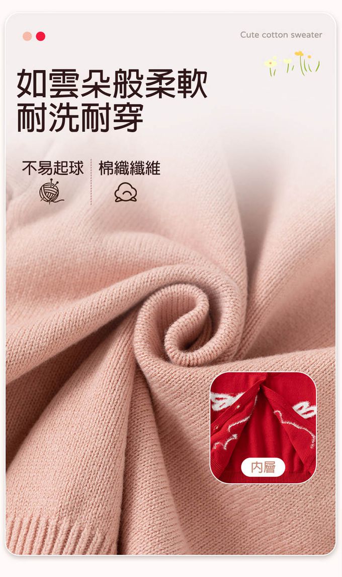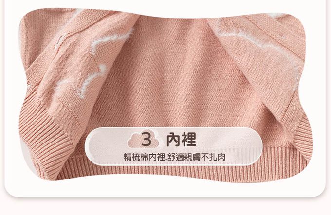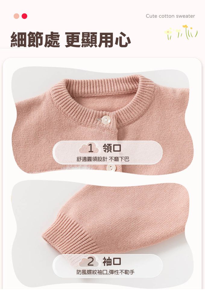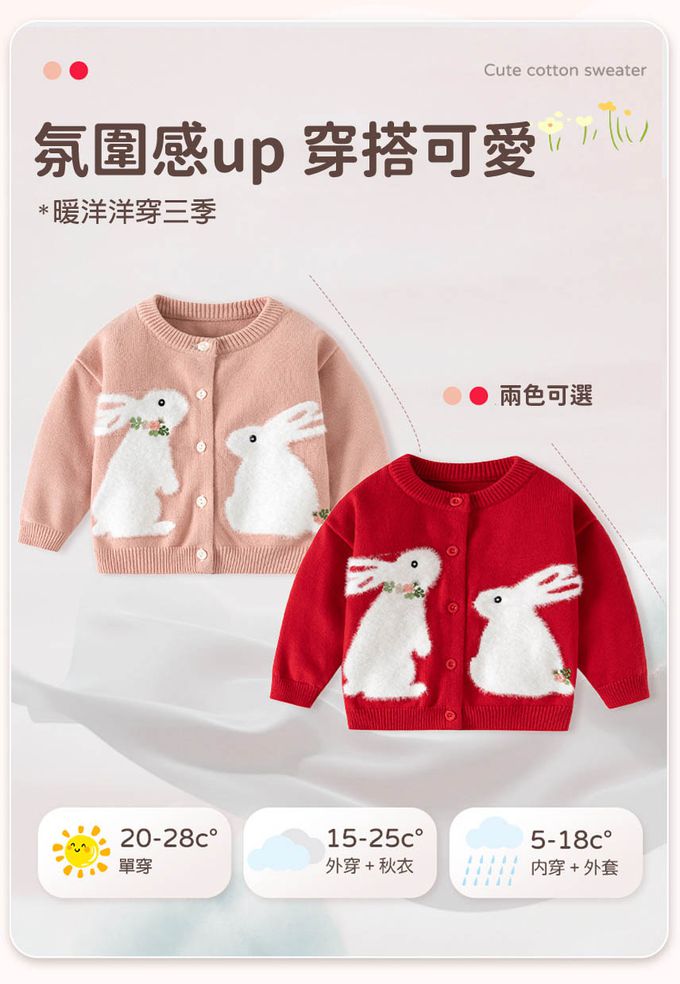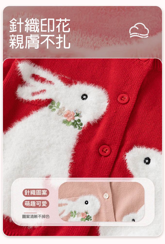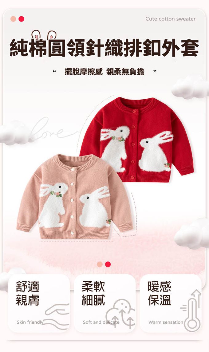 舒適圓領針織排釦外套-毛絨小兔-粉色