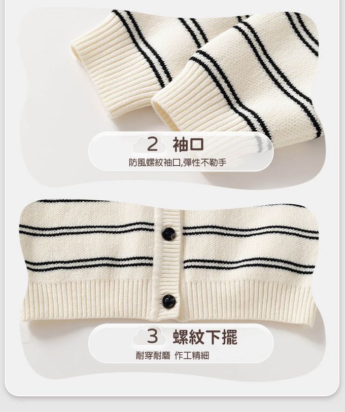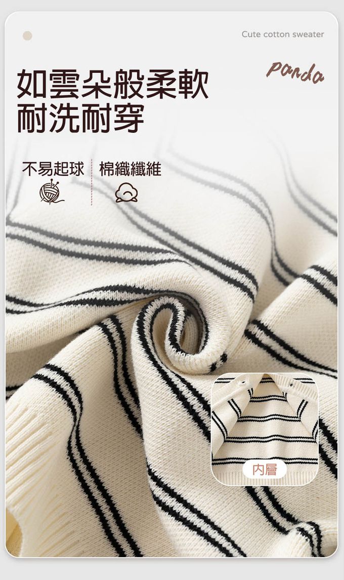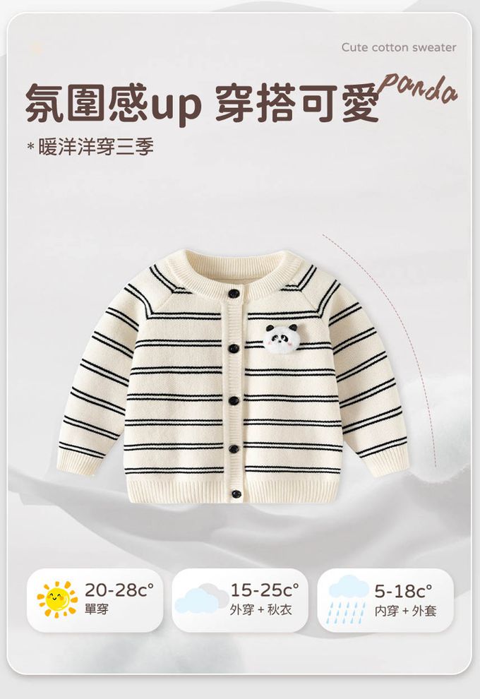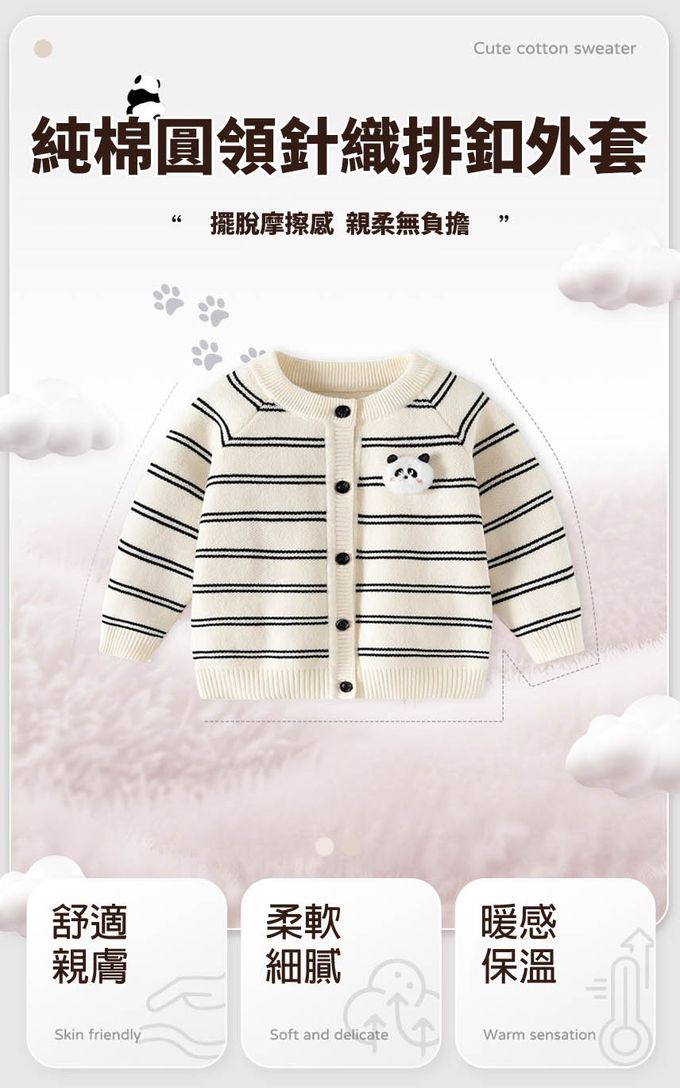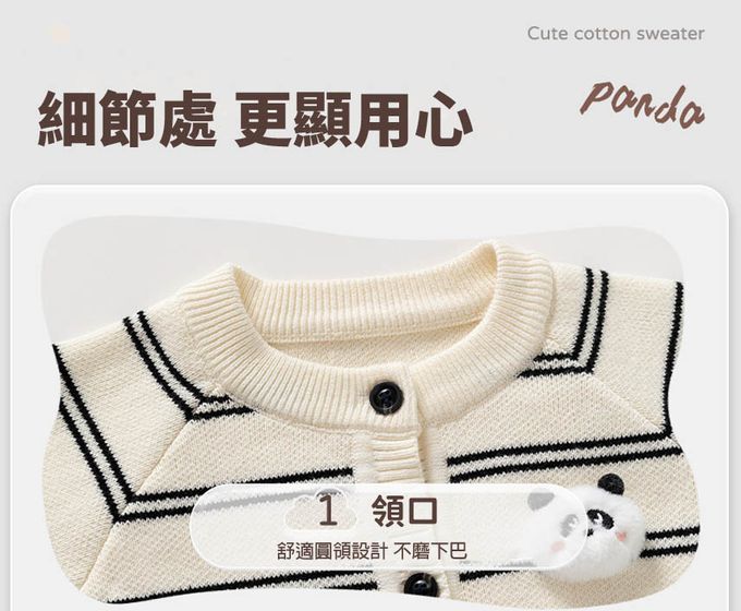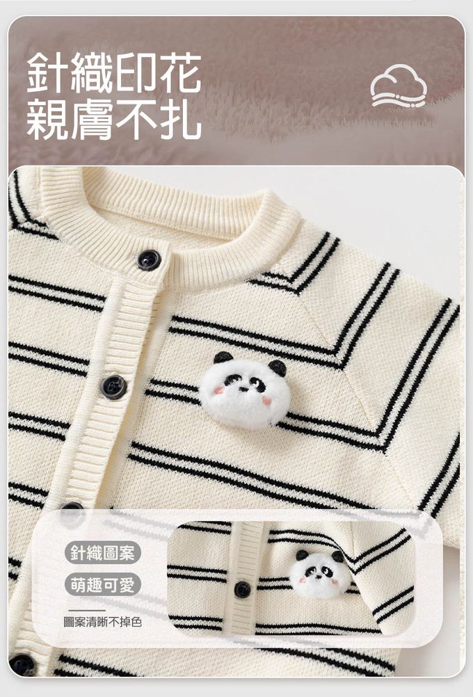 純棉圓領針織排釦外套-立體熊貓-黑白條紋