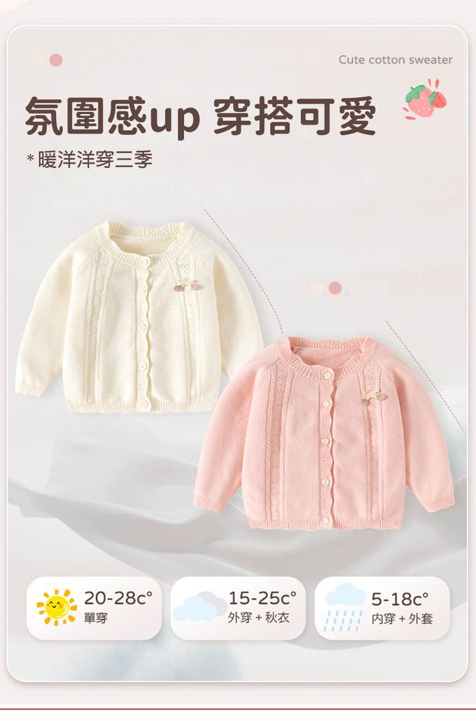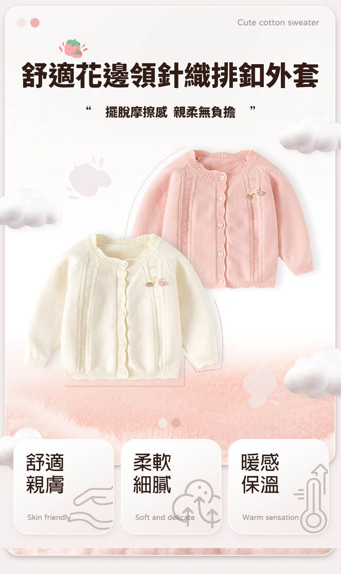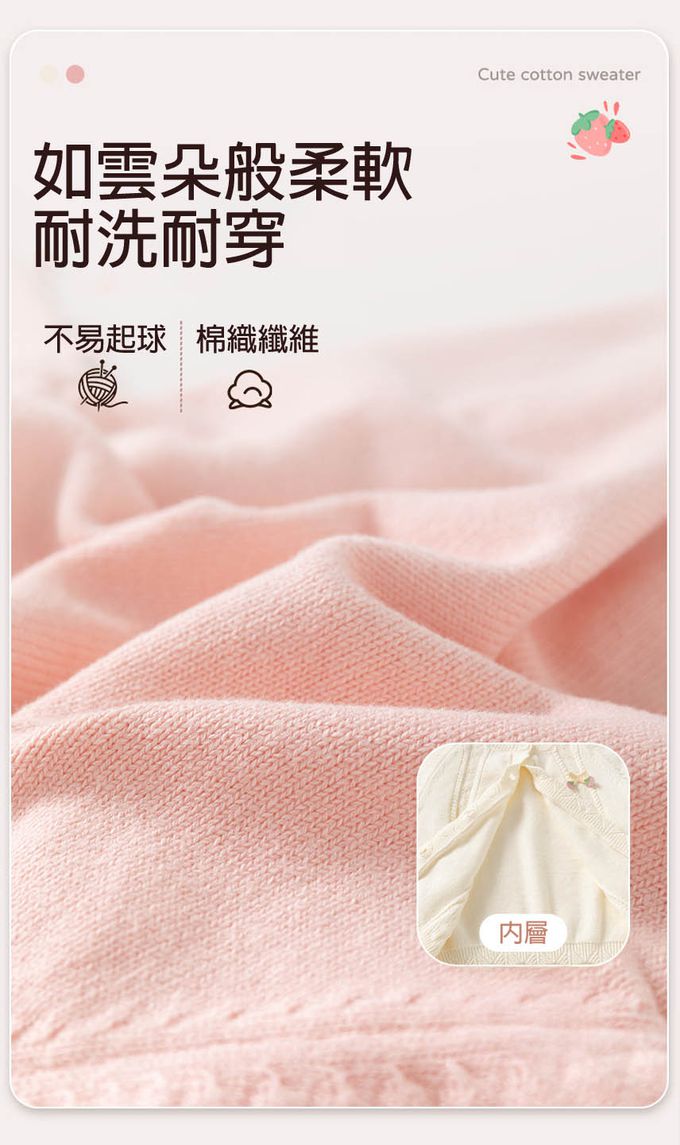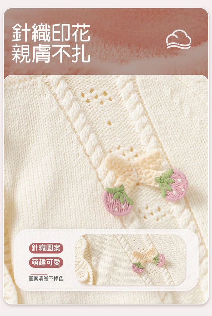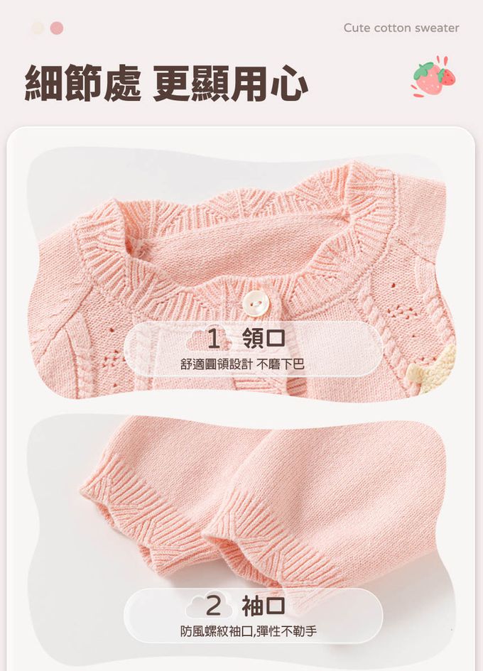BABUYU - 舒適花邊領針織排釦外套-草莓蝴蝶結-粉色