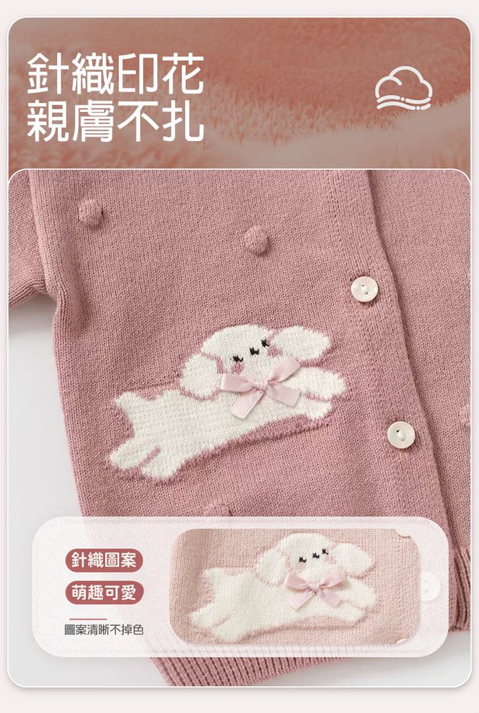 舒適圓領針織排釦外套-蝴蝶結小狗-粉色