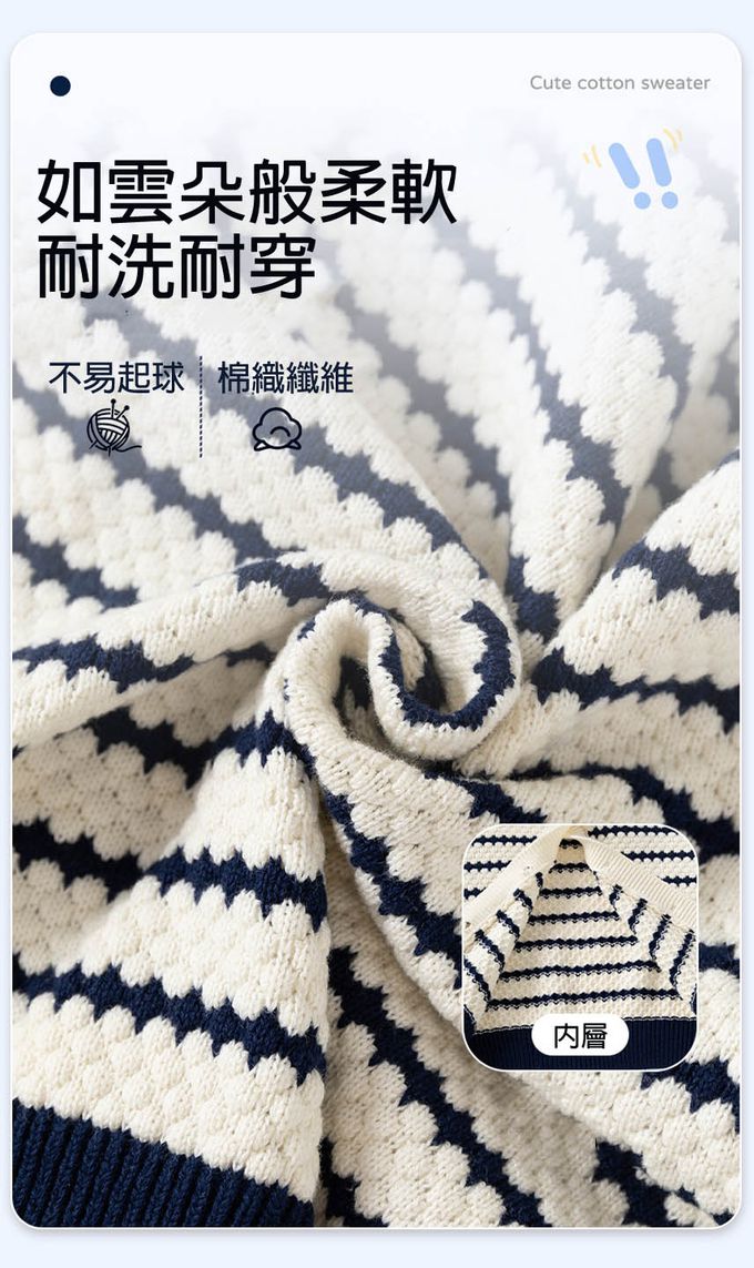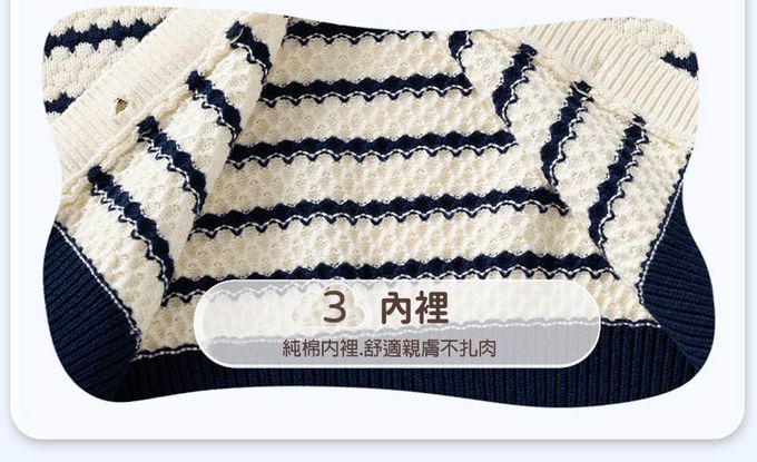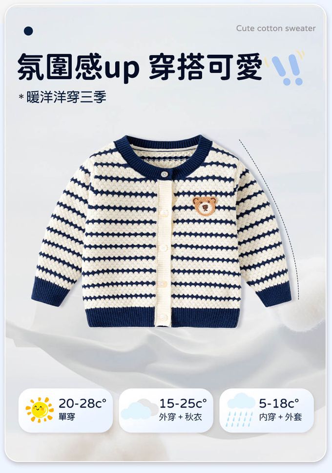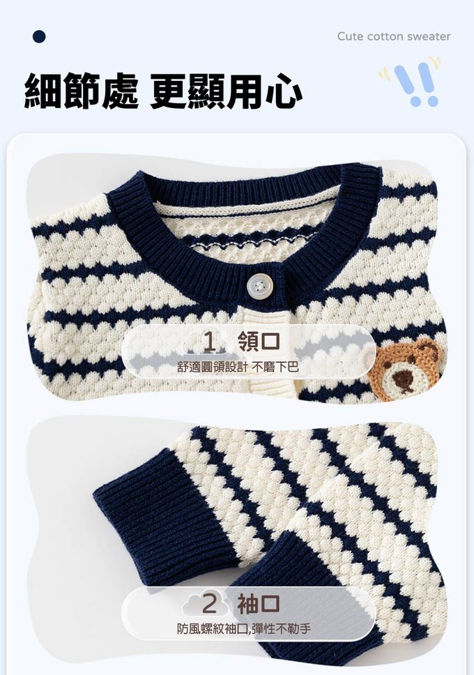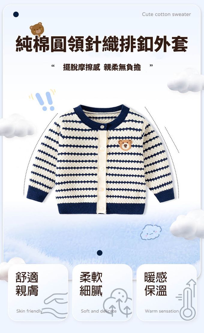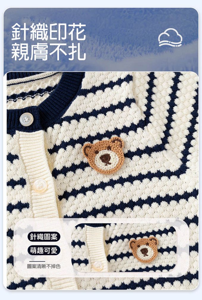 純棉圓領針織排釦外套-小熊-緹花條紋