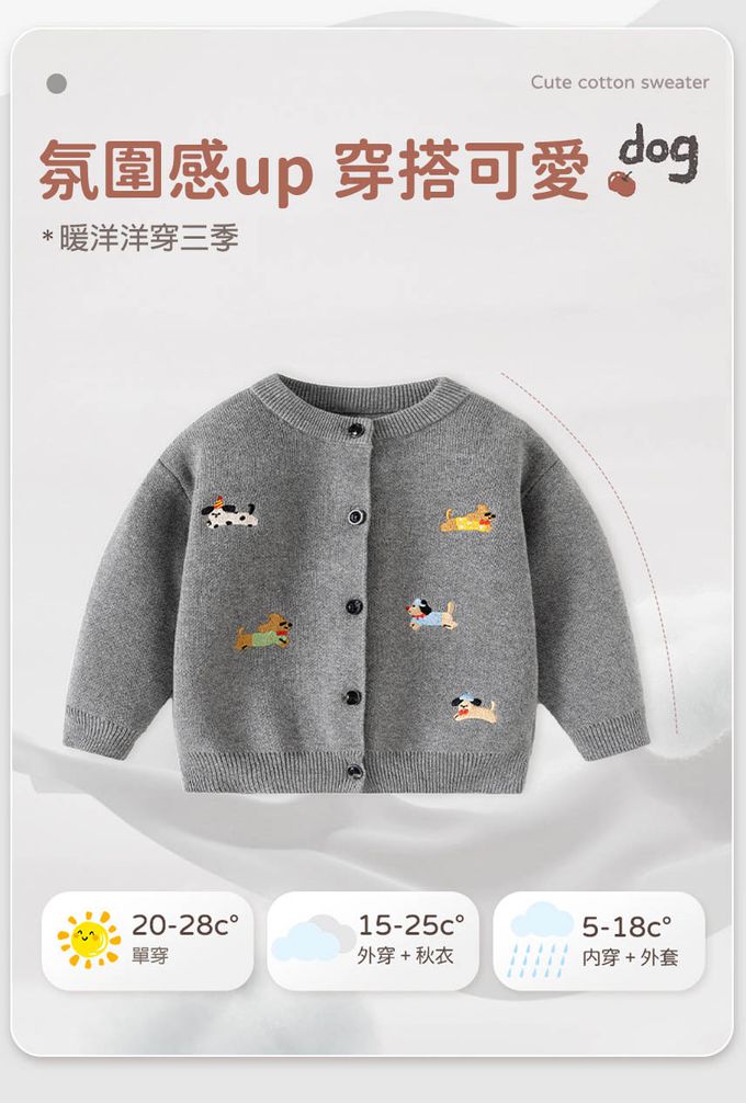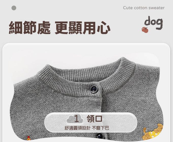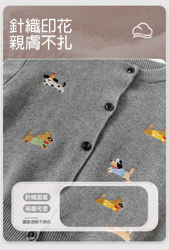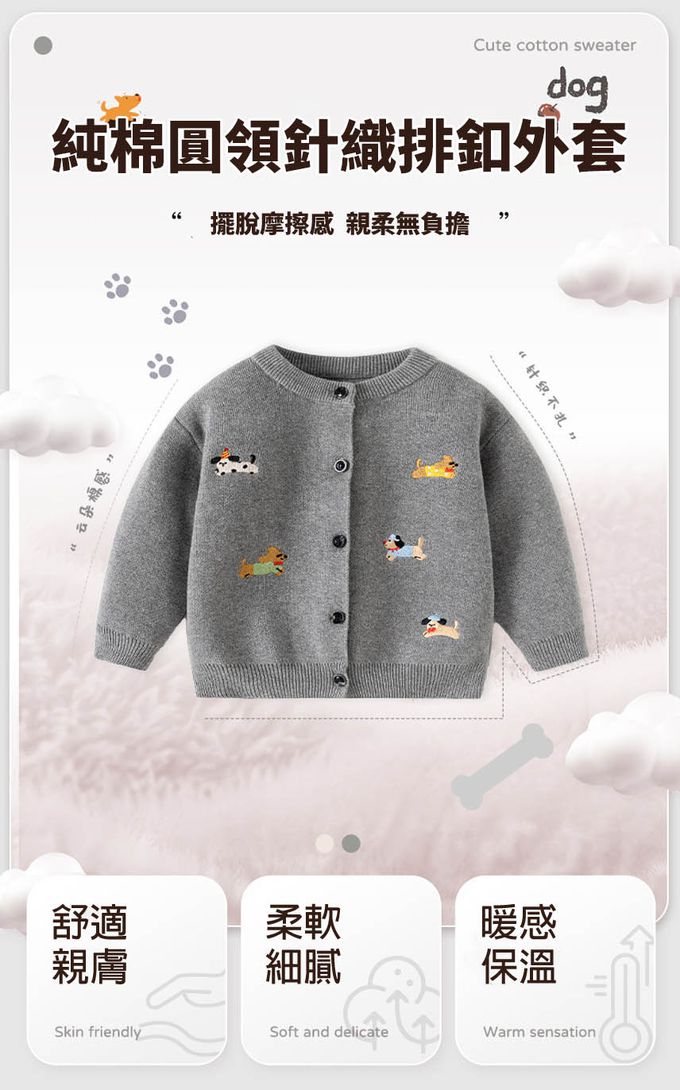 BABUYU - 純棉圓領針織排釦外套-Hi恐龍-藍色
