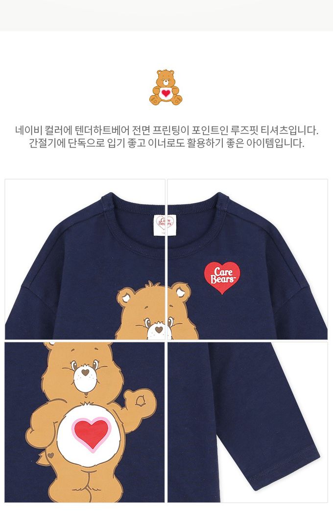 韓國 Care Bears - 聯名款哈囉大熊純棉長袖上衣-海軍藍