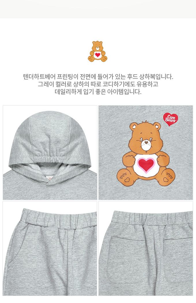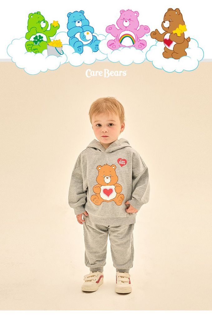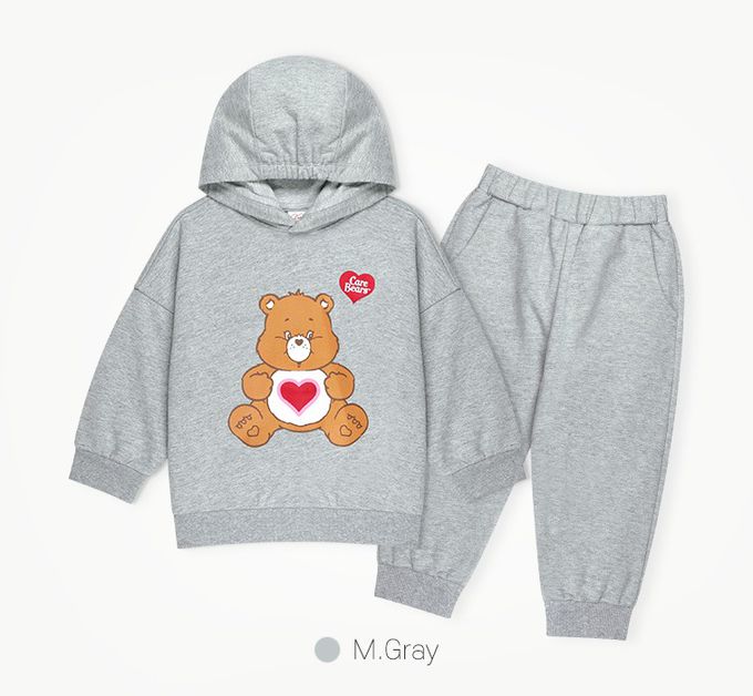韓國 Care Bears - 聯名款愛心熊純棉連帽長袖套裝-灰