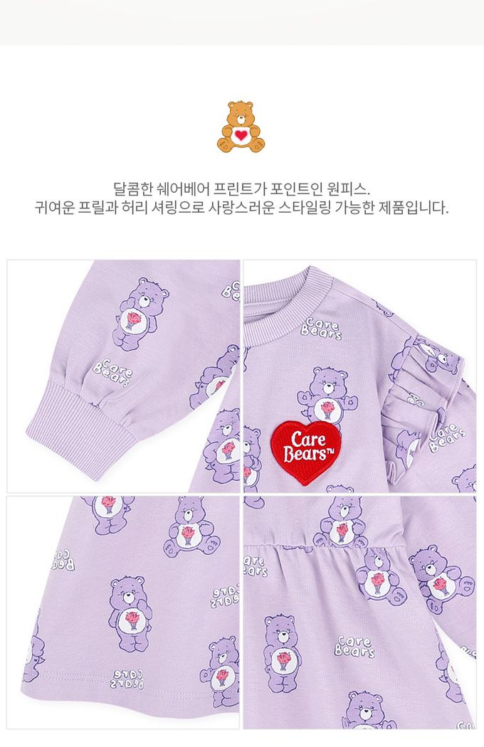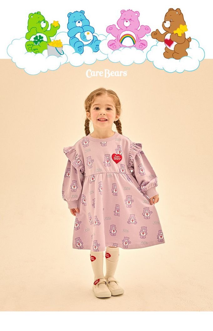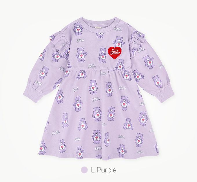 韓國 Care Bears - 聯名款甜心奶昔熊長袖拼接洋裝-紫