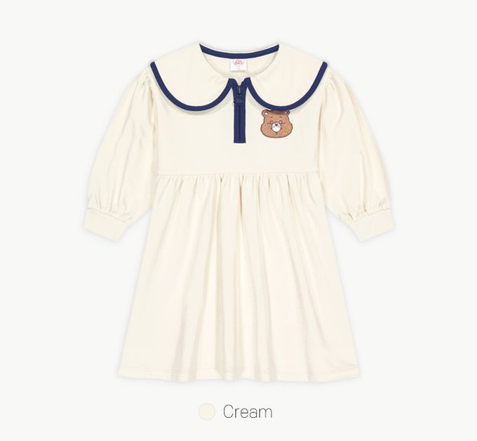 • 品名:聯名款刺繡熊點綴水手翻領長袖洋裝