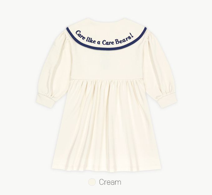 韓國 Care Bears - 聯名款刺繡熊點綴水手翻領長袖洋裝-米