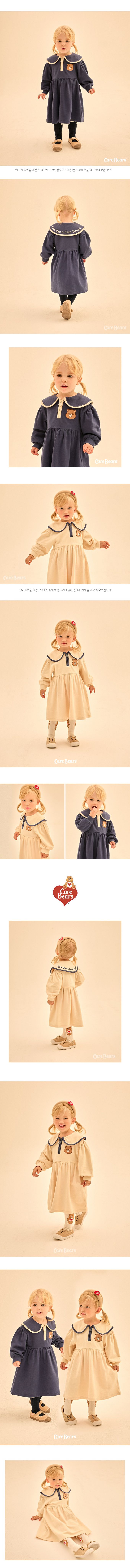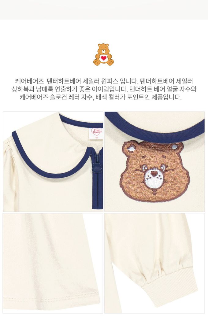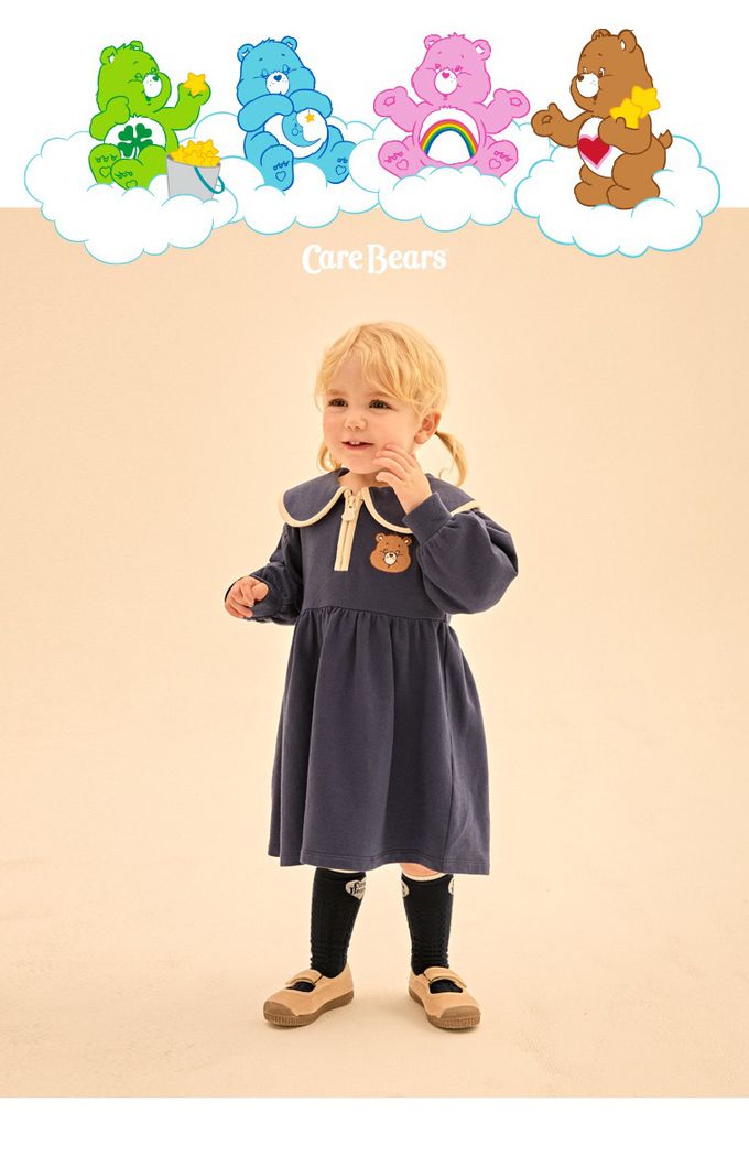 韓國 Care Bears - 聯名款刺繡熊點綴水手翻領長袖洋裝-海軍藍