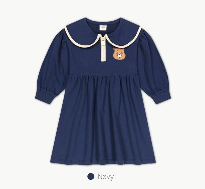 • 品名:聯名款刺繡熊點綴水手翻領長袖洋裝
