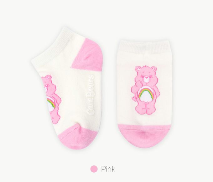 韓國 Care Bears - 聯名款兒童腳底止滑短襪-米X粉-一雙