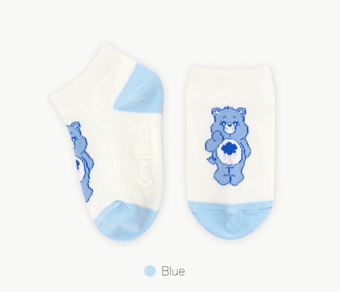 韓國 Care Bears - 聯名款兒童腳底止滑短襪-米X天藍-一雙