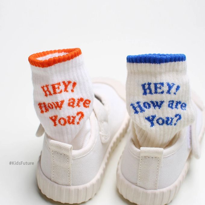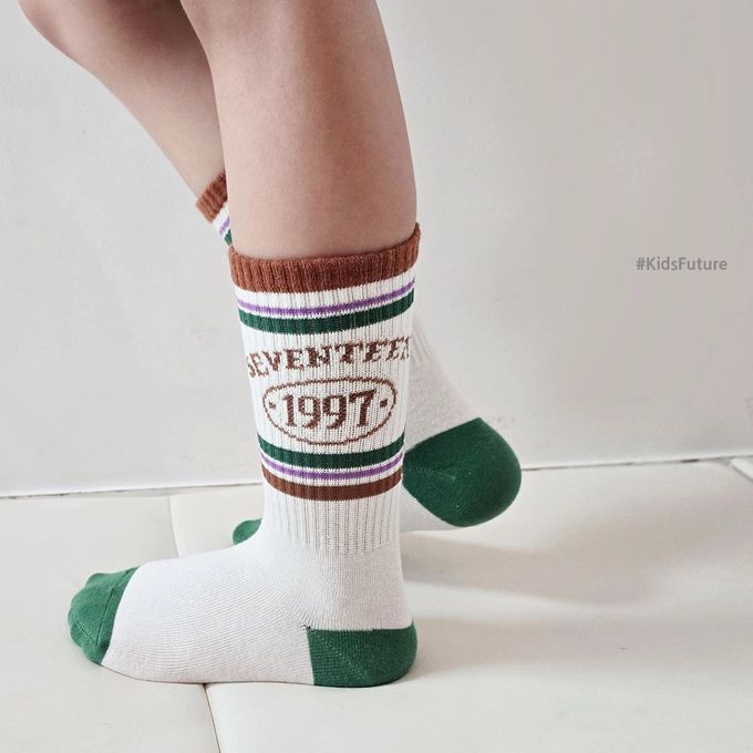 韓國南大門童裝 - (五入組)韓製兒童中長筒襪-學院文字