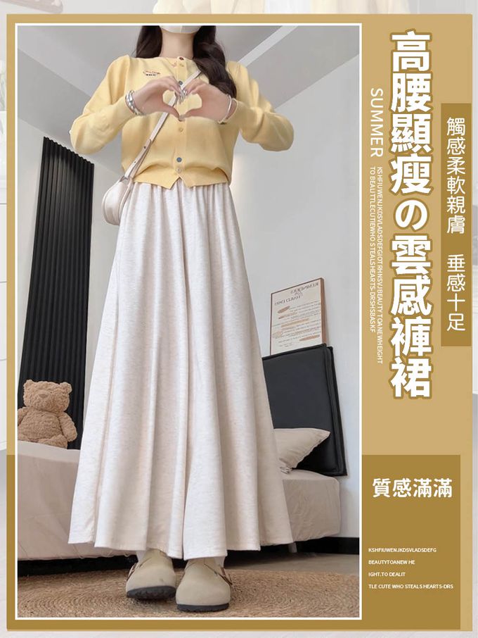 Lusairé - 雲感親膚瘦瘦裙褲-有口袋(可選長度)-溫柔燕麥