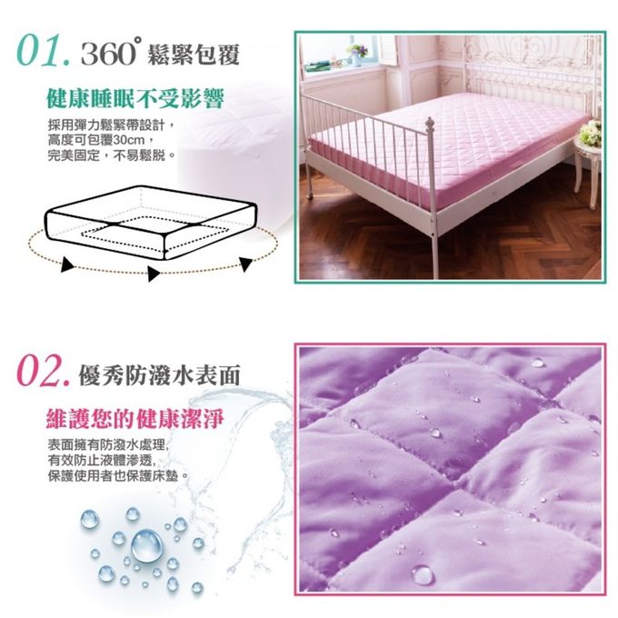 • 品名:MIT台灣製 防潑水防蹣抗菌床包式保潔墊