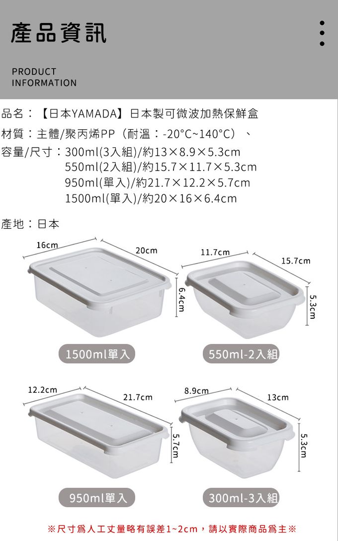 品名:日本製可微波加熱保鮮盒5入組1500ml