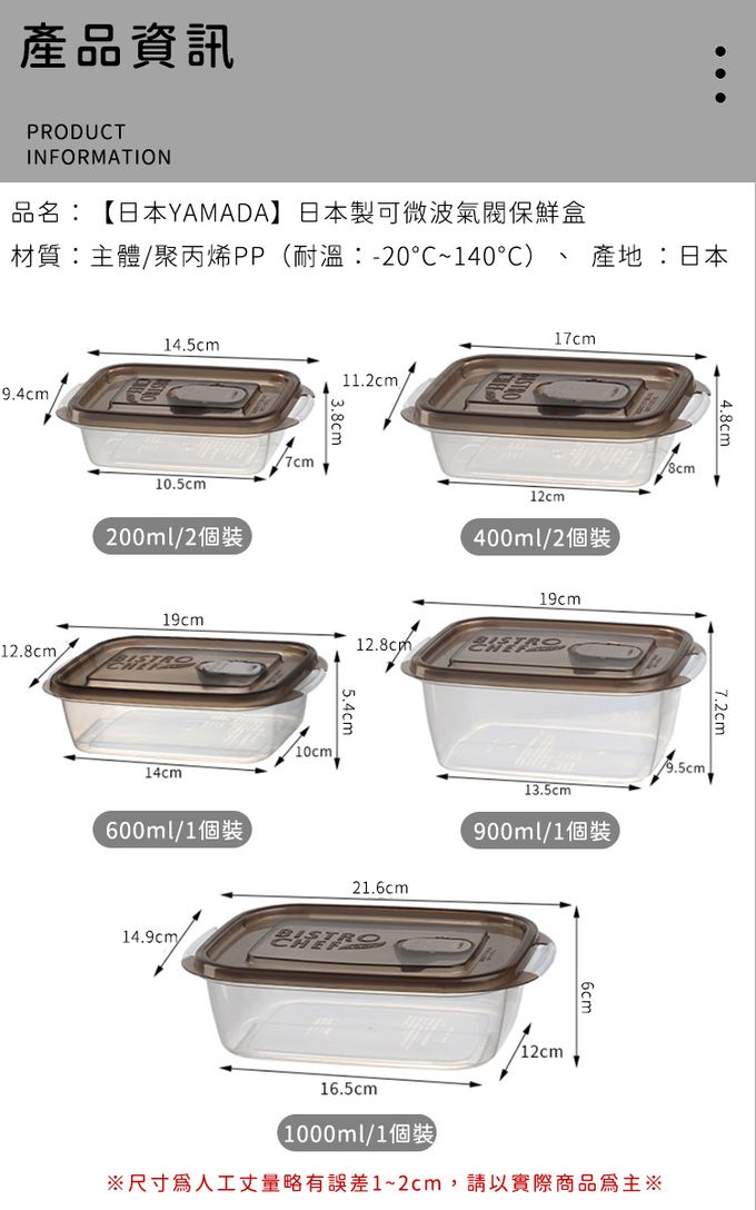 品名:日本製可微波氣閥保鮮盒5入組600ml