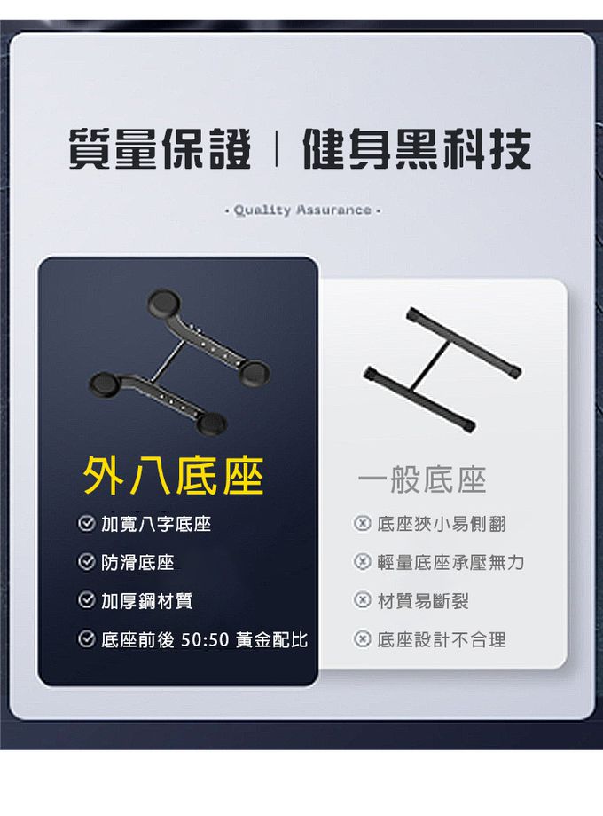 注意事項:1.商品到貨享鑑賞期之權益,鑑賞期並非試用期,辦理退貨商品必須是全新狀態且紙箱及商品配件包裝須完整。商品一經使用或組裝後,恕無法辦理退換貨 2.請確認商品是否有龜裂或破損,如有異常請勿使用。 3.網頁商品會因面板螢幕解析度不同,造成圖片顏色呈現略有不同,請以實品顏色為準 4.商品為人工丈量略有1~3公分內誤差,請以實品為主。 5.請放置於通風乾燥處,遠離過於潮濕地方。 6.建議穿著運動鞋使用,增加穩定性並保護腳踝。 7.初次使用請調整至最低阻力,熟悉動作再逐步增加強度。 8.每次使用建議控制在 10~20 分鐘/次,避免肌肉疲勞。 9.使用後請用乾布擦拭表面汗水,避免陽光直曬或潮濕環境存放。 10.若有膝蓋、骨盆或下背傷病,請先諮詢醫師後再使用。 11.本產品為健身輔助器材,實際效果因個人體質與使用習慣而異。